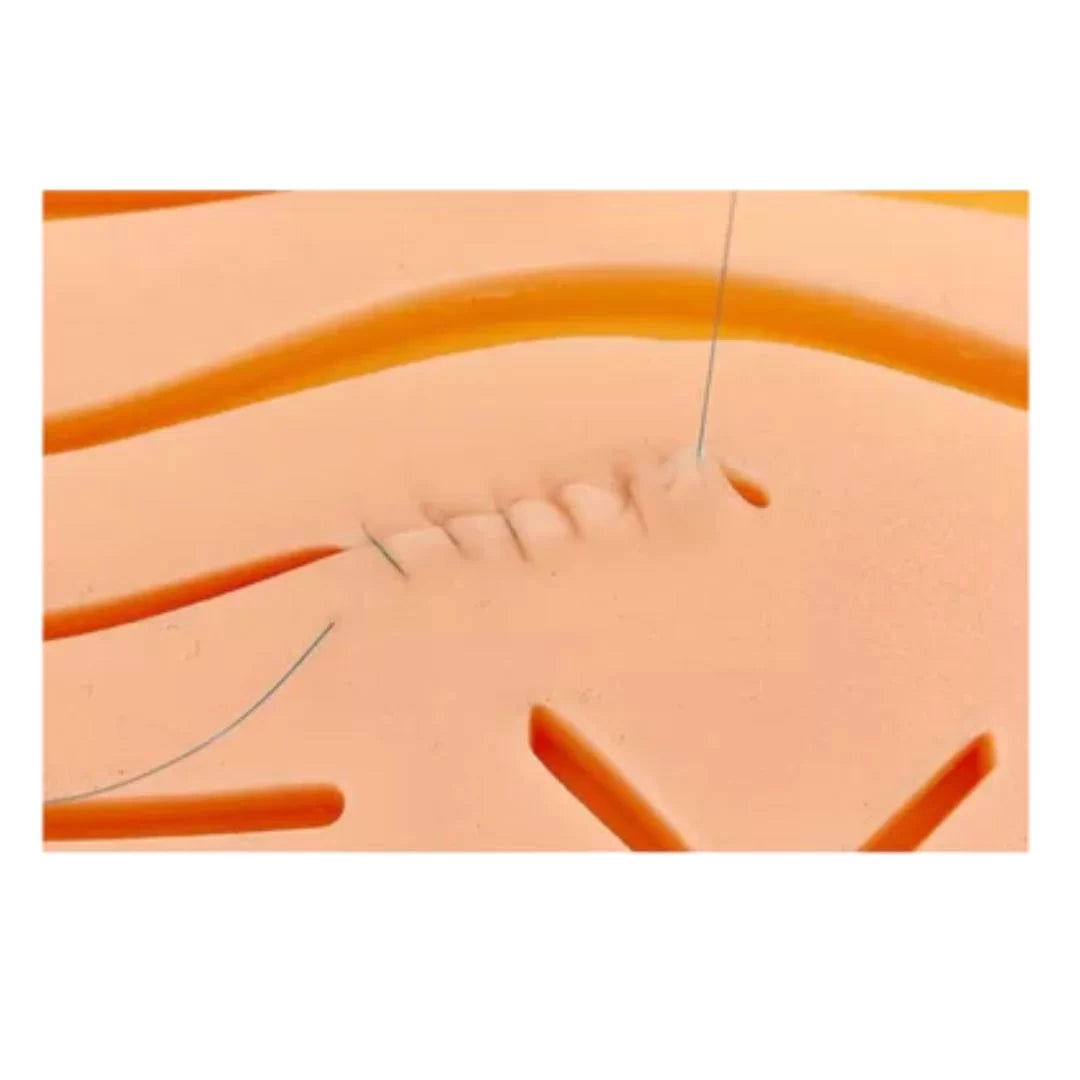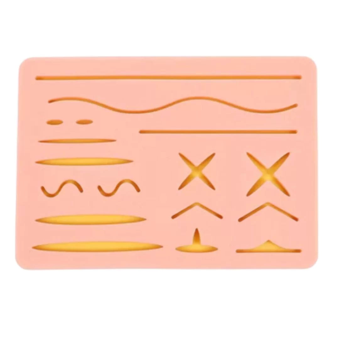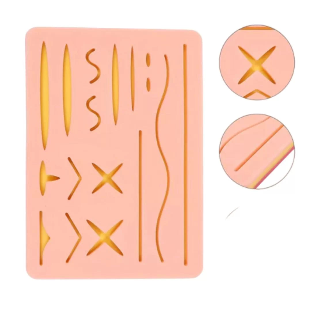 - La Almohadilla de Entrenamiento o Pad de Sutura, es de material de silicona de alta calidad que simula las diferentes capas de piel, grasa y musculo.